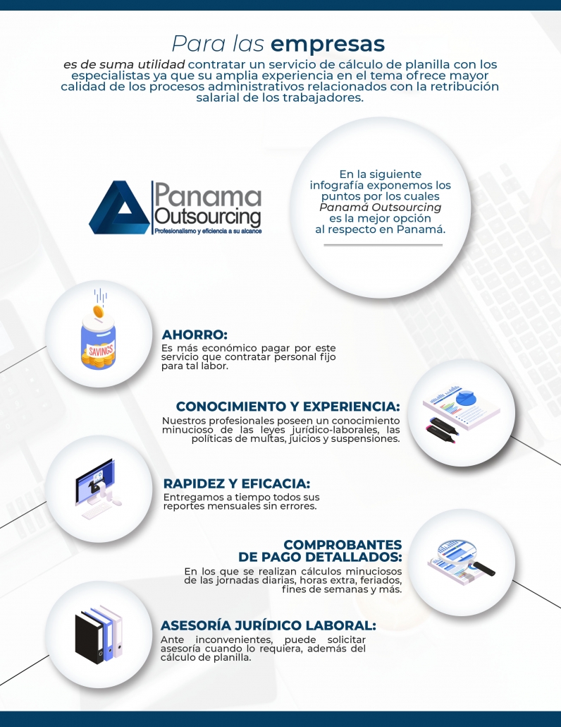 Un servicio de cálculo de planilla, es aquel en el que se terceriza dicha labor, la cual consiste en especificar todos los detalles vinculados con el sueldo de los empleados y las gestiones pertinentes ante la caja del seguro social.
